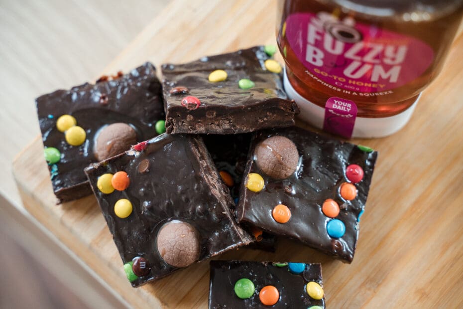 Meet your new Easter go-to. Rich, chocolatey fudge with a soft, melt-in-your-mouth texture and a golden drizzle of real Aussie honey running right through it.… Read More »Chocolate and Fuzzy Bum Honey Easter Fudge